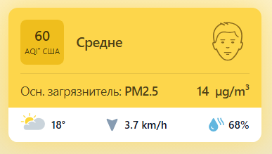 В 11:00 станция мониторинга в столице Узбекистана показывала результат в 60 AQI. Концентрация PM2.5 — в 2,8 раза выше рекомендуемого ВОЗ среднегодового значения качества воздуха.