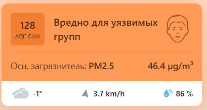 В 08:55 станция мониторинга в столице Узбекистана показывала результат в 128 AQI. Концентрация PM2.5 — в 9,3 раза выше рекомендуемого ВОЗ среднегодового значения качества воздуха.