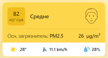 В 09:00 станция мониторинга в столице Узбекистана показывала результат в 82 AQI. Концентрация PM2.5 — в 5,2 раза выше рекомендуемого ВОЗ среднегодового значения качества воздуха.