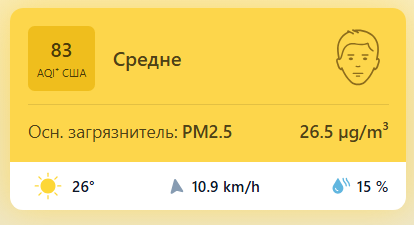 В 09:00 станция мониторинга в столице Узбекистана показывала результат в 83 AQI. Концентрация PM2.5 — в 5,3 раза выше рекомендуемого ВОЗ среднегодового значения качества воздуха.