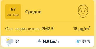 В 11:00 станция мониторинга в столице Узбекистана показывала результат в 67 AQI. Концентрация PM2.5 — в 3,6 раза выше рекомендуемого ВОЗ среднегодового значения качества воздуха.