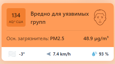 В 08:50 станция мониторинга в столице Узбекистана показывала результат в 134 AQI. Концентрация PM2.5 — в 9,8 раза выше рекомендуемого ВОЗ среднегодового значения качества воздуха.
