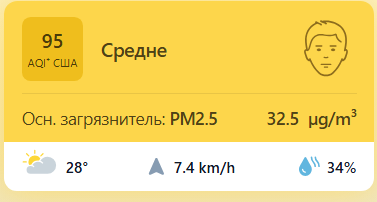 В 09:00 станция мониторинга в столице Узбекистана показывала результат в 95 AQI. Концентрация PM2.5 — в 6,5 раза выше рекомендуемого ВОЗ среднегодового значения качества воздуха.