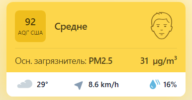 В 09:05 станция мониторинга в столице Узбекистана показывала результат в 92 AQI. Концентрация PM2.5 — в 6,2 раза выше рекомендуемого ВОЗ среднегодового значения качества воздуха.