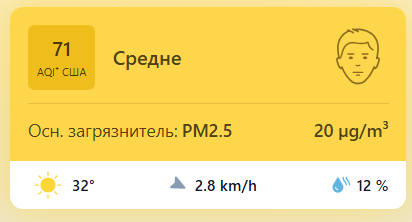 В 10:30 станция мониторинга в столице Узбекистана показывала результат в 71 AQI. Концентрация PM2.5 — в 4 раза выше рекомендуемого ВОЗ среднегодового значения качества воздуха.