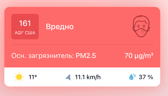В 12:15 станция мониторинга в столице Узбекистана показывала результат в 161 AQI. Концентрация PM2.5 — в 14 раза выше рекомендуемого ВОЗ среднегодового значения качества воздуха.