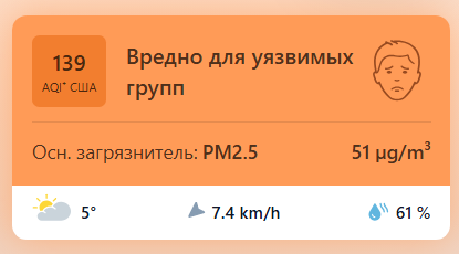 В 08:45 станция мониторинга в столице Узбекистана показывала результат в 139 AQI. Концентрация PM2.5 — в 10,2 раза выше рекомендуемого ВОЗ среднегодового значения качества воздуха.