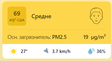 В 09:30 станция мониторинга в столице Узбекистана показывала результат в 69 AQI. Концентрация PM2.5 — в 3,8 раза выше рекомендуемого ВОЗ среднегодового значения качества воздуха.