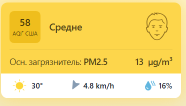 В 09:05 станция мониторинга в столице Узбекистана показывала результат в 58 AQI. Концентрация PM2.5 — в 2,6 раза выше рекомендуемого ВОЗ среднегодового значения качества воздуха.