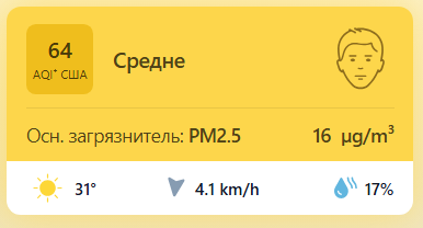 В 09:05 станция мониторинга в столице Узбекистана показывала результат в 64 AQI. Концентрация PM2.5 — в 3,2 раза выше рекомендуемого ВОЗ среднегодового значения качества воздуха.