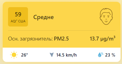 В 09:00 станция мониторинга в столице Узбекистана показывала результат в 59 AQI. Концентрация PM2.5 — в 2,7 раза выше рекомендуемого ВОЗ среднегодового значения качества воздуха.