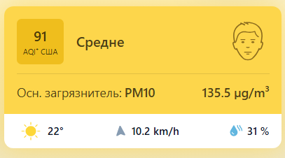 В 08:50 станция мониторинга в столице Узбекистана показывала результат в 91 AQI. Концентрация PM2.5 — в 5,8 раз выше рекомендуемого ВОЗ среднегодового значения качества воздуха.