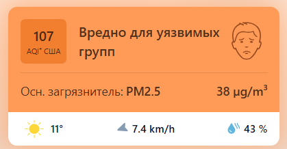 В 08:55 станция мониторинга в столице Узбекистана показывала результат в 107 AQI. Концентрация PM2.5 — в 7,6 раза выше рекомендуемого ВОЗ среднегодового значения качества воздуха.