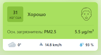 В 08:40 станция мониторинга в столице Узбекистана показывала результат в 31 AQI. Концентрация PM2.5 — в 1,1 раза выше рекомендуемого ВОЗ среднегодового значения качества воздуха.