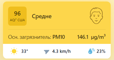 В 09:10 станция мониторинга в столице Узбекистана показывала результат в 96 AQI. Концентрация PM2.5 — в 5 раз выше рекомендуемого ВОЗ среднегодового значения качества воздуха.