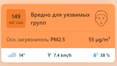 В 08:55 станция мониторинга в столице Узбекистана показывала результат в 149 AQI. Концентрация PM2.5 — в 11 раз выше рекомендуемого ВОЗ среднегодового значения качества воздуха.
