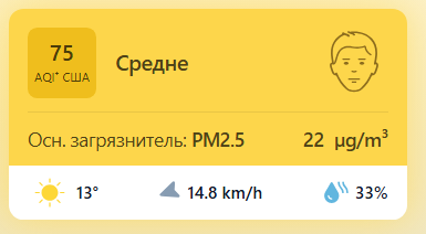 В 09:15 станция мониторинга в столице Узбекистана показывала результат в 74 AQI. Концентрация PM2.5 — в 4,4 раза выше рекомендуемого ВОЗ среднегодового значения качества воздуха.