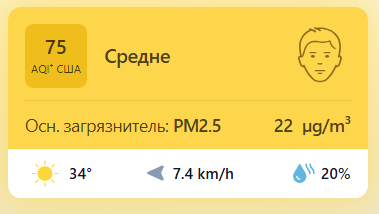 В 09:00 станция мониторинга в столице Узбекистана показывала результат в 75 AQI. Концентрация PM2.5 — в 4,4 раза выше рекомендуемого ВОЗ среднегодового значения качества воздуха.