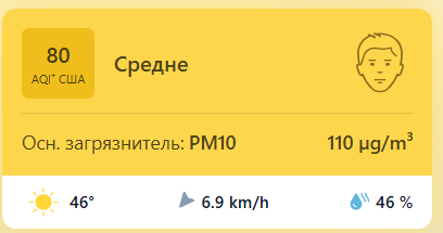 В 08:45 станция мониторинга в столице Узбекистана показывала результат в 80 AQI. Концентрация PM2.5 — в 7,4 раза выше рекомендуемого ВОЗ среднегодового значения качества воздуха.