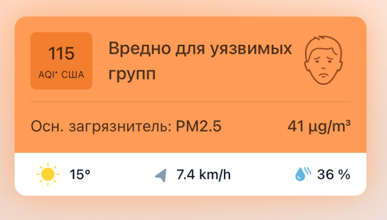 В 12:00 станция мониторинга в столице Узбекистана показывала результат в 115 AQI. Концентрация PM2.5 — в 8,2 раза выше рекомендуемого ВОЗ среднегодового значения качества воздуха.