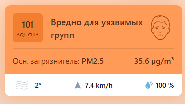 В 08:40 станция мониторинга в столице Узбекистана показывала результат в 101 AQI. Концентрация PM2.5 — в 7,1 раза выше рекомендуемого ВОЗ среднегодового значения качества воздуха.