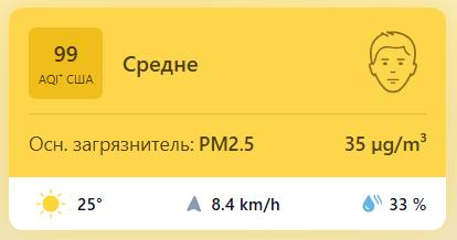 В 08:50 станция мониторинга в столице Узбекистана показывала результат в 99 AQI. Концентрация PM2.5 — в 7 раз выше рекомендуемого ВОЗ среднегодового значения качества воздуха.