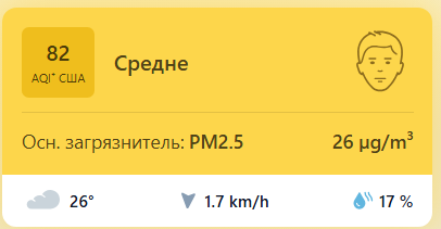 В 09:00 станция мониторинга в столице Узбекистана показывала результат в 82 AQI. Концентрация PM2.5 — в 5,2 раза выше рекомендуемого ВОЗ среднегодового значения качества воздуха.