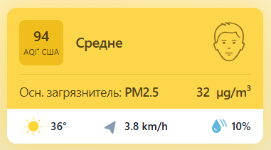 В 09:05 станция мониторинга в столице Узбекистана показывала результат в 94 AQI. Концентрация PM2.5 — в 6,4 раза выше рекомендуемого ВОЗ среднегодового значения качества воздуха.