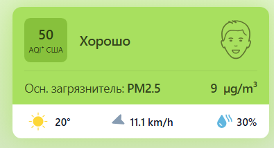 В 09:00 станция мониторинга в столице Узбекистана показывала результат в 50 AQI. Концентрация PM2.5 — в 1,8 раза выше рекомендуемого ВОЗ среднегодового значения качества воздуха.