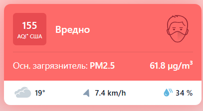 В 11:05 станция мониторинга в столице Узбекистана показывала результат в 155 AQI. Концентрация PM2.5 — в 12,4 раза выше рекомендуемого ВОЗ среднегодового значения качества воздуха.