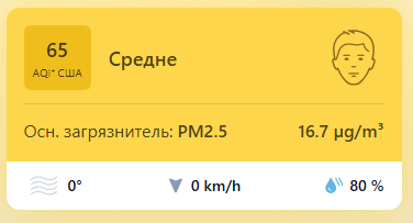 В 08:50 станция мониторинга в столице Узбекистана показывала результат в 65 AQI. Концентрация PM2.5 — в 3,3 раза выше рекомендуемого ВОЗ среднегодового значения качества воздуха.