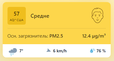 В 09:15 станция мониторинга в столице Узбекистана показывала результат в 57 AQI. Концентрация PM2.5 — в 2,5 раза выше рекомендуемого ВОЗ среднегодового значения качества воздуха.