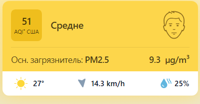 В 09:05 станция мониторинга в столице Узбекистана показывала результат в 51 AQI. Концентрация PM2.5 — в 1,9 раза выше рекомендуемого ВОЗ среднегодового значения качества воздуха.