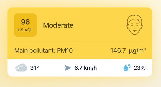 В 10:30 станция мониторинга в столице Узбекистана показывала результат в 96 AQI. Концентрация PM2.5 — в 5,4 раза выше рекомендуемого ВОЗ среднегодового значения качества воздуха.