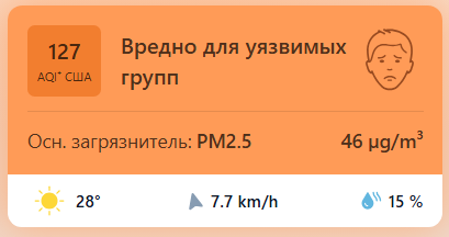 В 08:55 станция мониторинга в столице Узбекистана показывала результат в 127 AQI. Концентрация PM2.5 — в 9,2 раза выше рекомендуемого ВОЗ среднегодового значения качества воздуха.
