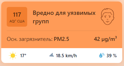 В 08:45 станция мониторинга в столице Узбекистана показывала результат в 117 AQI. Концентрация PM2.5 — в 8,4 раза выше рекомендуемого ВОЗ среднегодового значения качества воздуха.