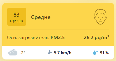 В 08:45 станция мониторинга в столице Узбекистана показывала результат в 83 AQI. Концентрация PM2.5 — в 5,2 раза выше рекомендуемого ВОЗ среднегодового значения качества воздуха.