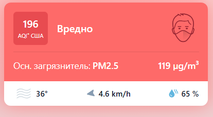 В 09:30 станция мониторинга в столице Узбекистана показывала результат в 196 AQI. Концентрация PM2.5 — в 23,8 раза выше рекомендуемого ВОЗ среднегодового значения качества воздуха.