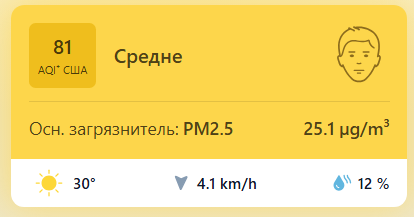 В 10:45 станция мониторинга в столице Узбекистана показывала результат в 81 AQI. Концентрация PM2.5 — в 5 раз выше рекомендуемого ВОЗ среднегодового значения качества воздуха.