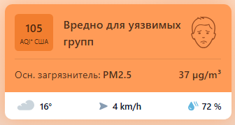 В 09:00 станция мониторинга в столице Узбекистана показывала результат в 105 AQI. Концентрация PM2.5 — в 7,4 раза выше рекомендуемого ВОЗ среднегодового значения качества воздуха.