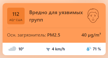 В 09:00 станция мониторинга в столице Узбекистана показывала результат в 112 AQI. Концентрация PM2.5 — в 8 раз выше рекомендуемого ВОЗ среднегодового значения качества воздуха.