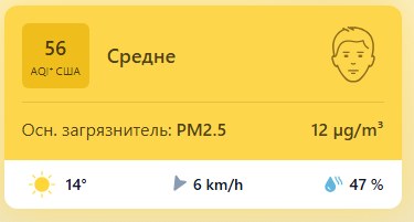 В 09:00 станция мониторинга в столице Узбекистана показывала результат в 56 AQI. Концентрация PM2.5 — в 2,4 раза выше рекомендуемого ВОЗ среднегодового значения качества воздуха.