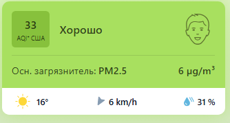 В 09:05 станция мониторинга в столице Узбекистана показывала результат в 33 AQI. Концентрация PM2.5 — в 1,2 раза выше рекомендуемого ВОЗ среднегодового значения качества воздуха.