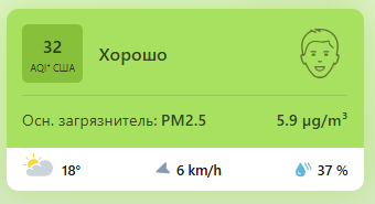 В 09:00 станция мониторинга в столице Узбекистана показывала результат в 32 AQI. Концентрация PM2.5 — в 1,2 раза выше рекомендуемого ВОЗ среднегодового значения качества воздуха.