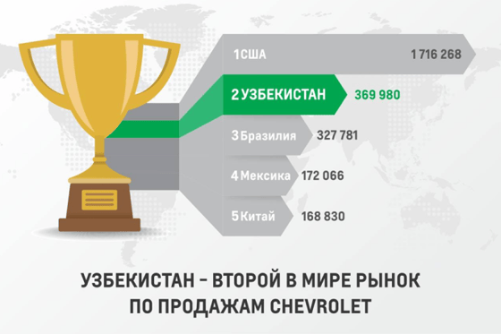 Ранее сообщалось, что Узбекистан, фактически, стал вторым по величине рынком для марки Chevrolet, уступая только США. Это поднимает Узбекистан в ранг важного игрока в автомобильной индустрии не только СНГ но и мира.