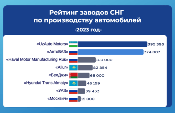 Лидеры производства автомобилей в СНГ в 2023 году: