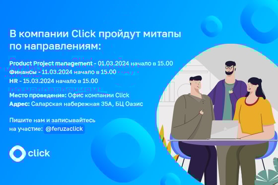 Click приглашает студентов 3-4 курса на серию митапов по следующим направлениям: маркетинг, HR, финансы, продуктовый менеджмент и управление проектами в сфере IT.