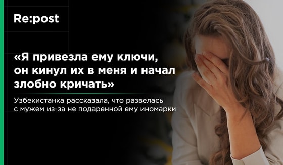 Все шло хорошо, но в один миг вся моя жизнь перевернулась. Когда все сидели за столом, мой отец поднялся и с наилучшими пожеланиями подарил Умиду ключи от машины Spark. Муж не взял ключи, разозлился и вышел. На следующий день я, вернувшись домой к Умиду, привезла ему ключи, он в ответ кинул их в меня и начал злобно кричать. Сказал, что дарить Spark — это позор. Оказывается, моя семья опозорила его перед друзьями и родственниками, подарив «такую» машину, нужно было, как минимум, иномарку купить. Весь этот немыслимый бред был приправлен оскорблениями в адрес меня и моей семьи.