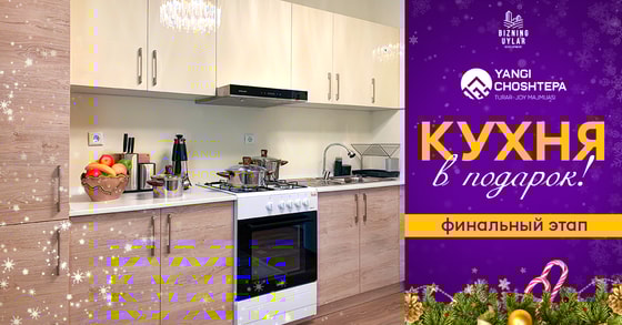 Только в декабре все покупатели жилой недвижимости в ЖК Yangi ChoshTepa получают в качестве праздничного бонуса современный кухонный гарнитур. Все квартиры, поступающие в продажу, готовы к заселению. А значит, у вас есть возможность приобрести полностью готовую квартиру с ремонтом и встретить приближающийся праздник в своем новом доме.