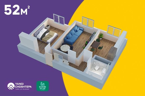 На данный момент в ЖК Yangi ChoshTepa полном ходом идет распродажа, двухкомнатных квартир с готовым ремонтом и выгодной локацией. Уже сейчас вы сможете купить себе комфортное жилье в 51 м2 по самым выгодным условиям и предложениям!